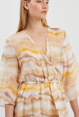 Skiva 9272 ist ein Midikleid aus einer leichten, hochwertigen Tencel-Qualität. Das Kleid hat eine normale Passform und verfügt über einen tiefen V-Ausschnitt, Wickel-Effekt und Gürtel-Details an der Taille für eine feminine Silhuette. Das Kleid hat einen trendigen Druck.